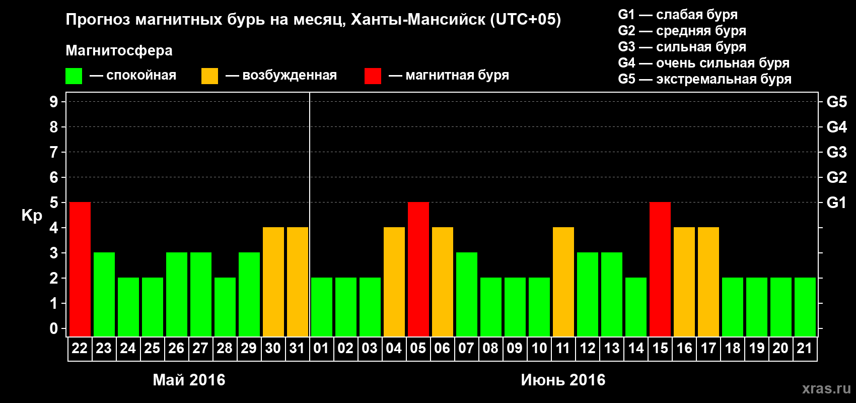Прогноз магнитных бурь в Ханты-Мансийске — 22 мая 2016 года