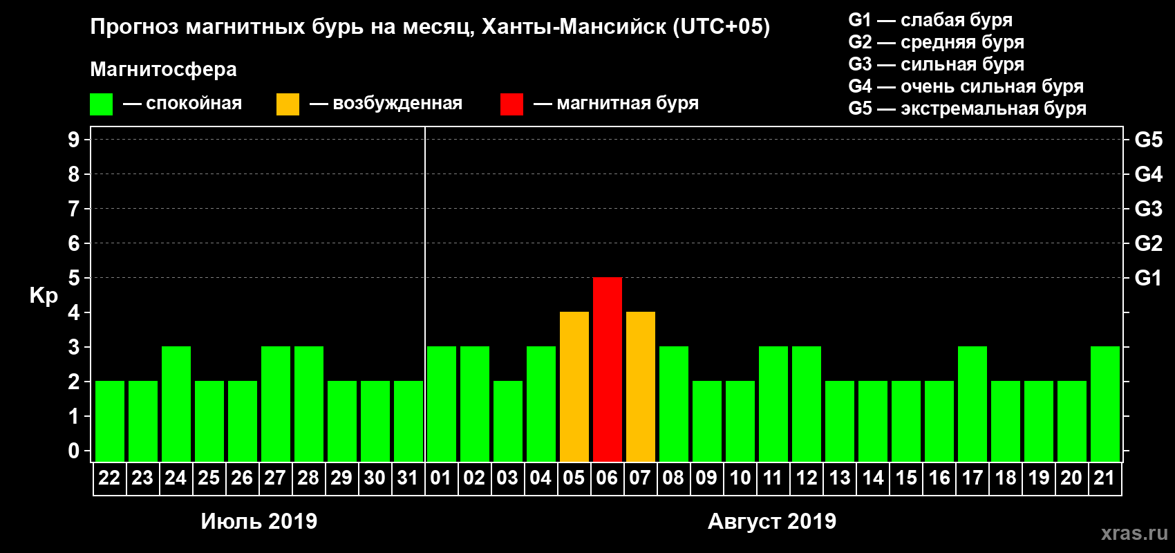 Прогноз магнитных бурь в Ханты-Мансийске — 22 июля 2019 года