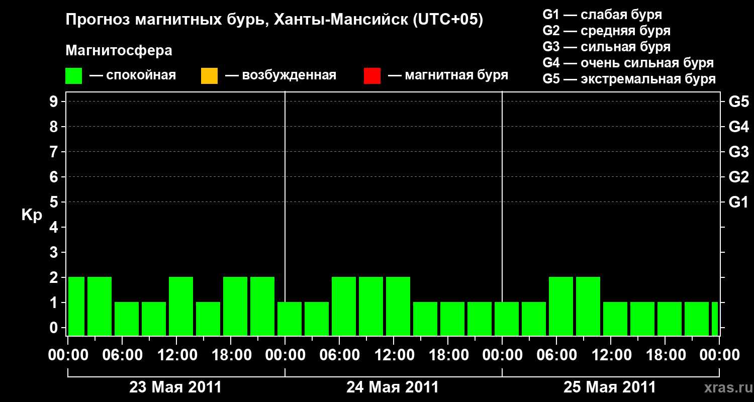 Прогноз магнитных бурь в Ханты-Мансийске — 23 мая 2011 года