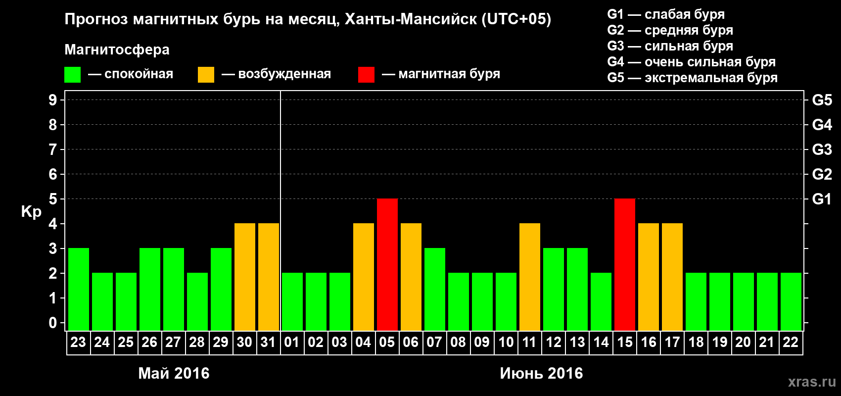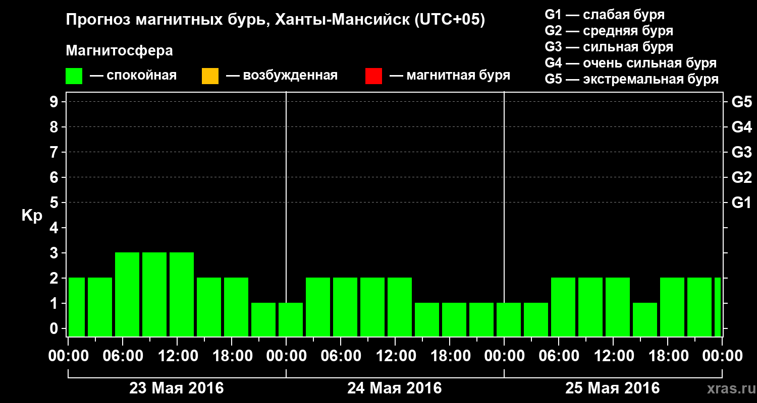 Прогноз магнитных бурь в Ханты-Мансийске — 23 мая 2016 года