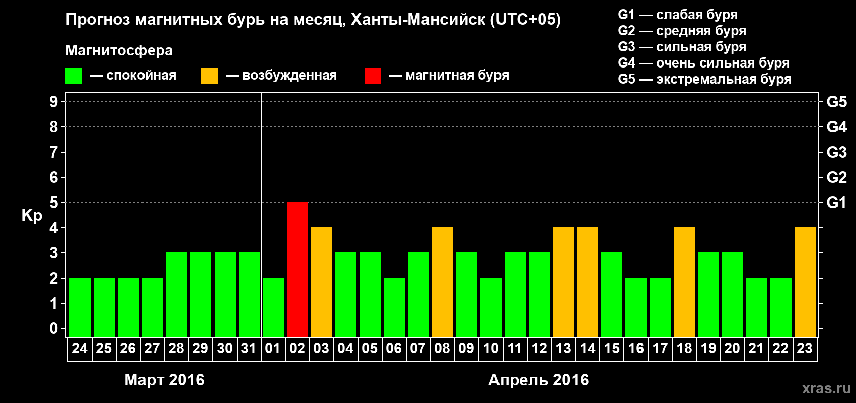 Прогноз магнитных бурь в Ханты-Мансийске — 24 марта 2016 года