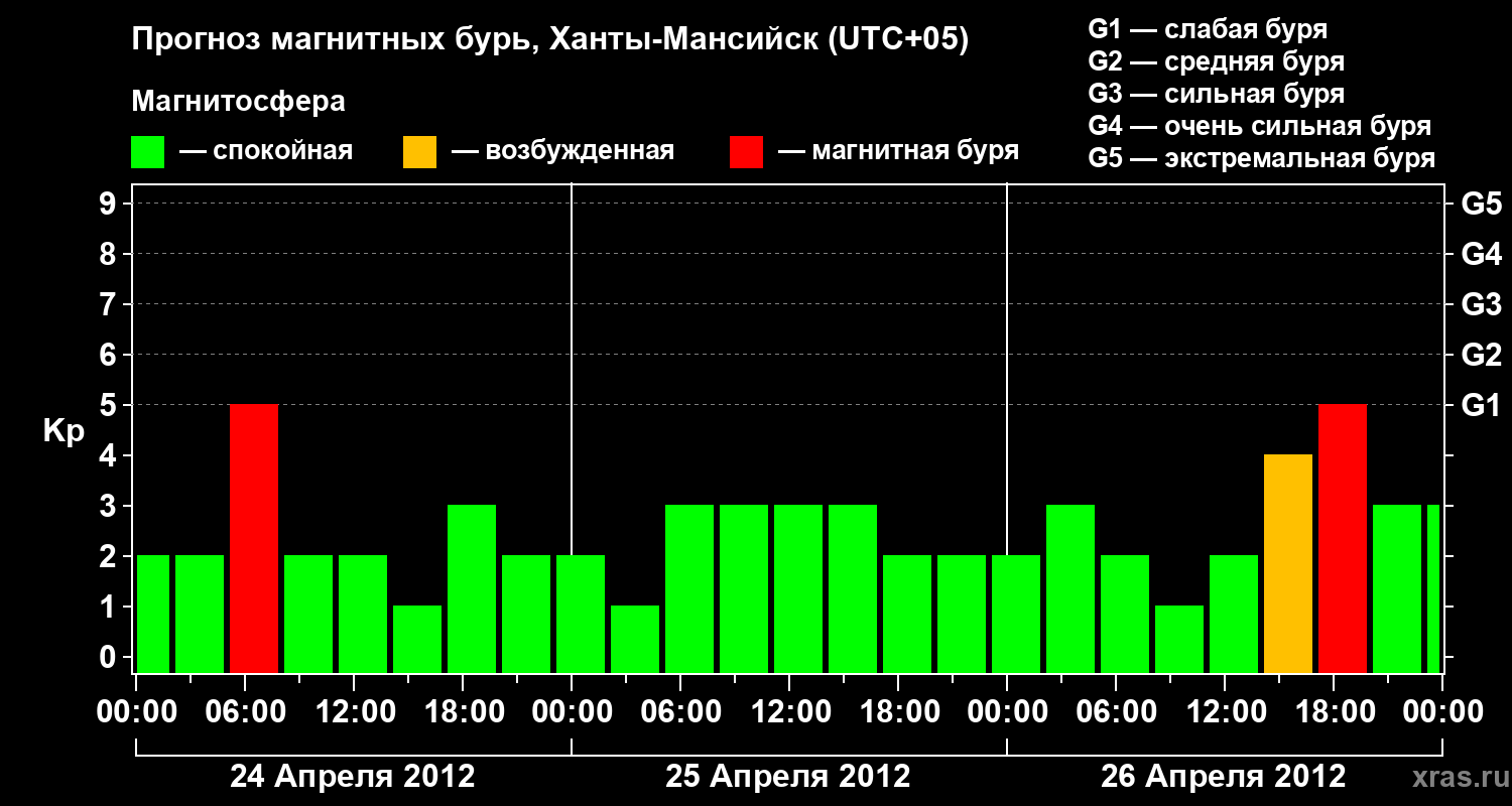 Прогноз магнитных бурь в Ханты-Мансийске на 24 апреля 2012 года
