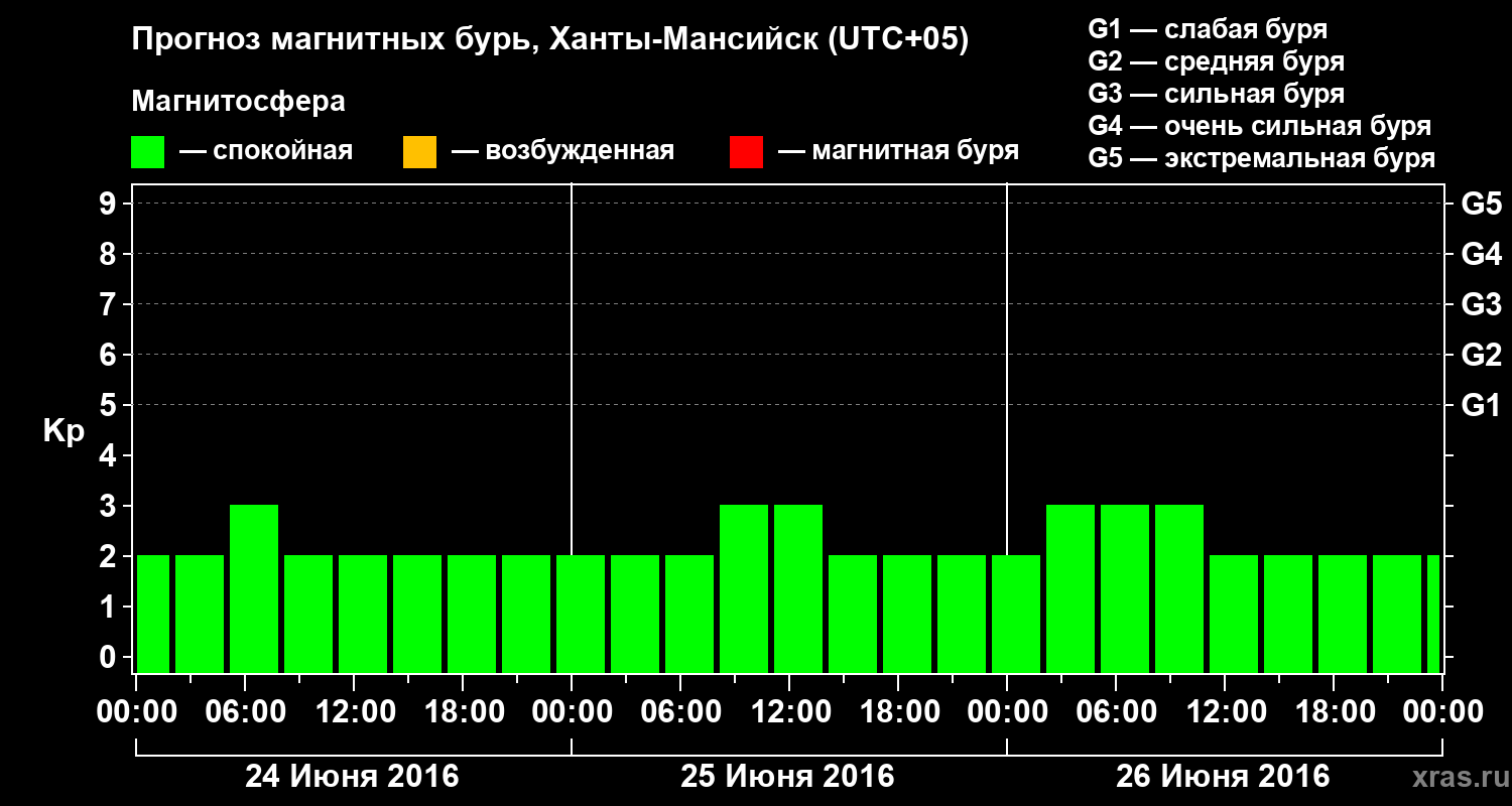 Прогноз магнитных бурь в Ханты-Мансийске — 24 июня 2016 года