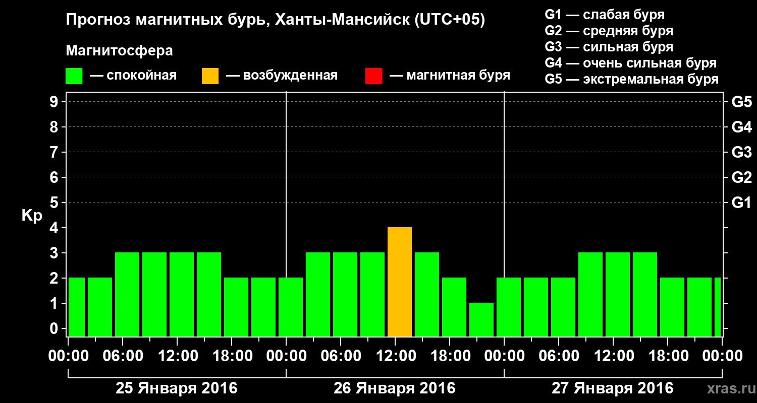 Прогноз магнитных бурь в Ханты-Мансийске на 25 января 2016 года