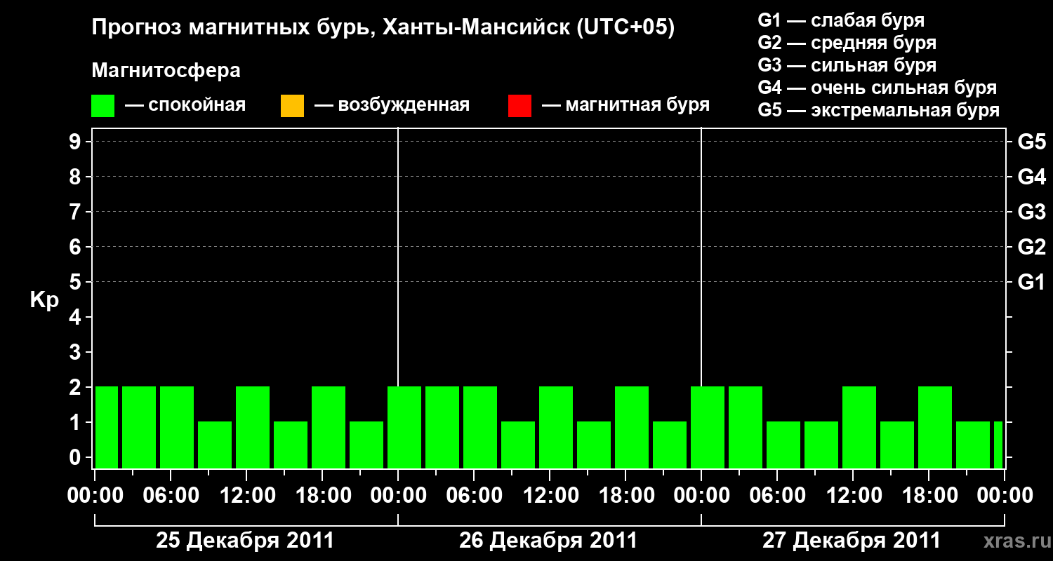 Прогноз магнитных бурь в Ханты-Мансийске — 25 декабря 2011 года