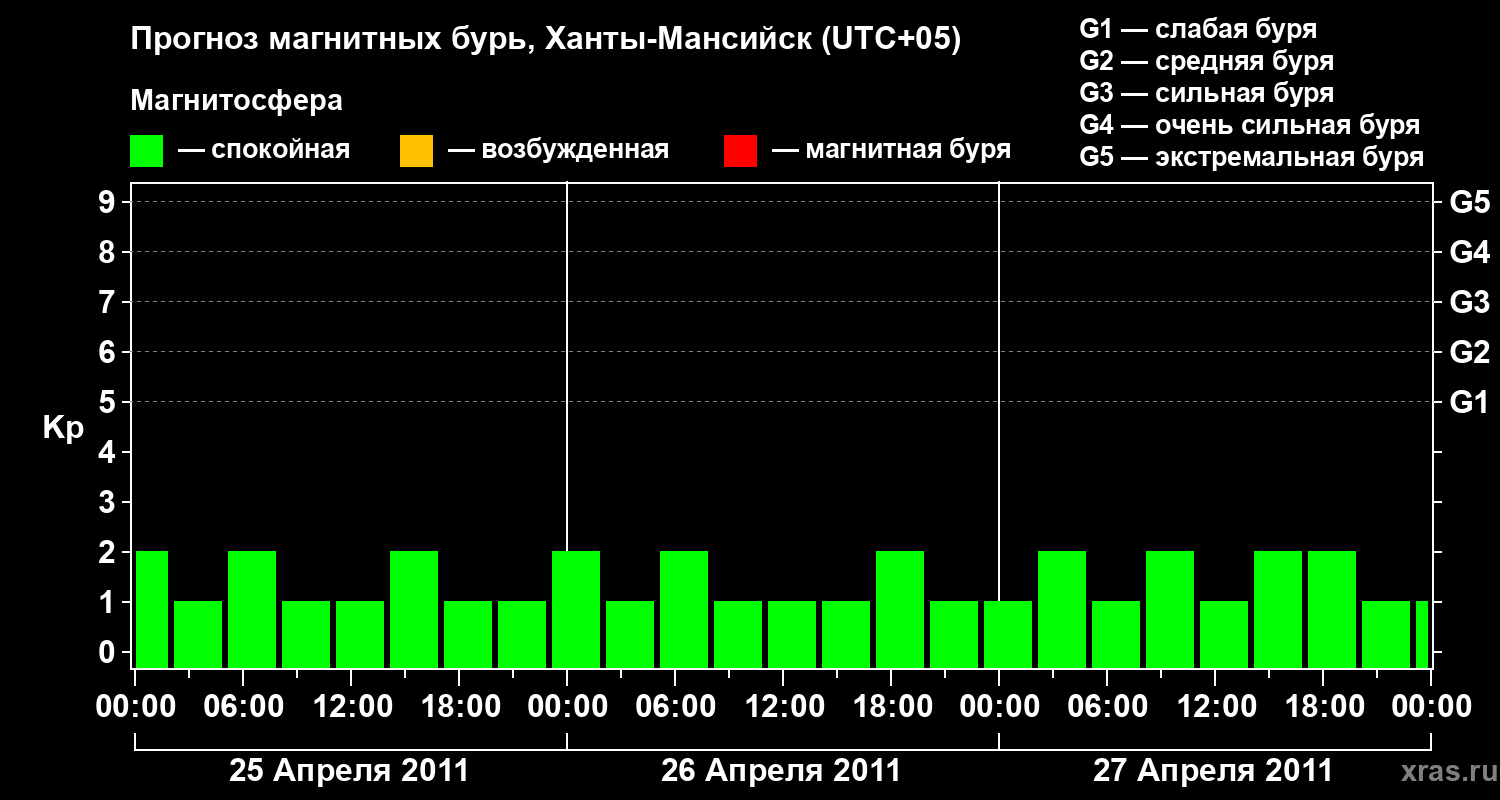 Прогноз магнитных бурь в Ханты-Мансийске — 25 апреля 2011 года