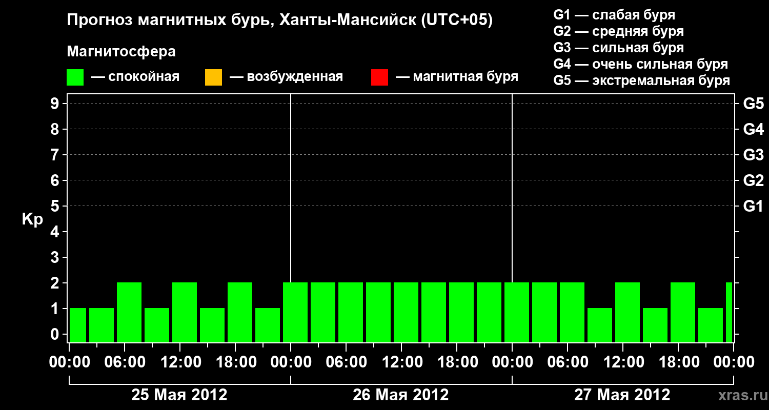 Прогноз магнитных бурь в Ханты-Мансийске — 25 мая 2012 года