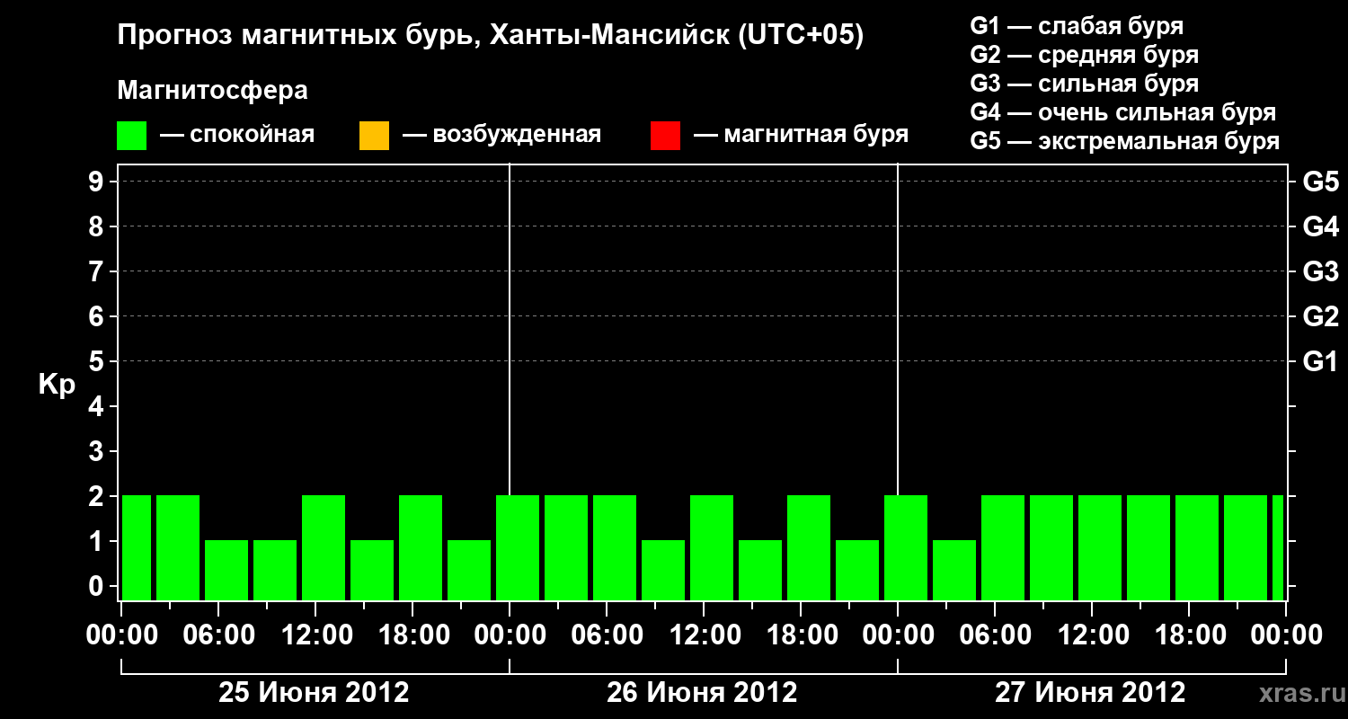 Прогноз магнитных бурь в Ханты-Мансийске — 25 июня 2012 года