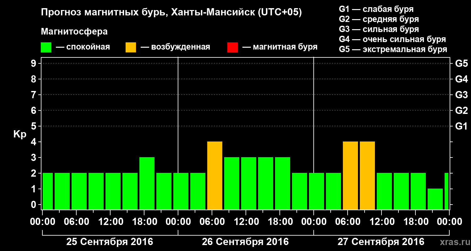 Прогноз магнитных бурь в Ханты-Мансийске — 25 сентября 2016 года