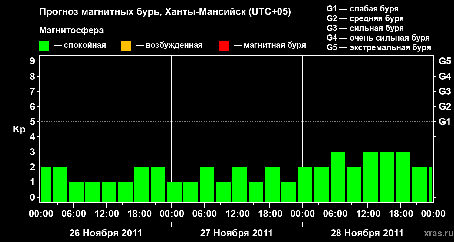 Прогноз магнитных бурь в Ханты-Мансийске — 26 ноября 2011 года