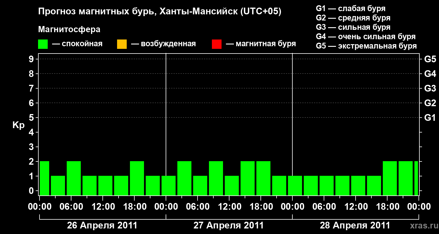 Прогноз магнитных бурь в Ханты-Мансийске — 26 апреля 2011 года