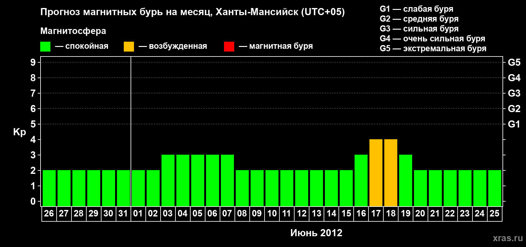Прогноз магнитных бурь в Ханты-Мансийске — 26 мая 2012 года