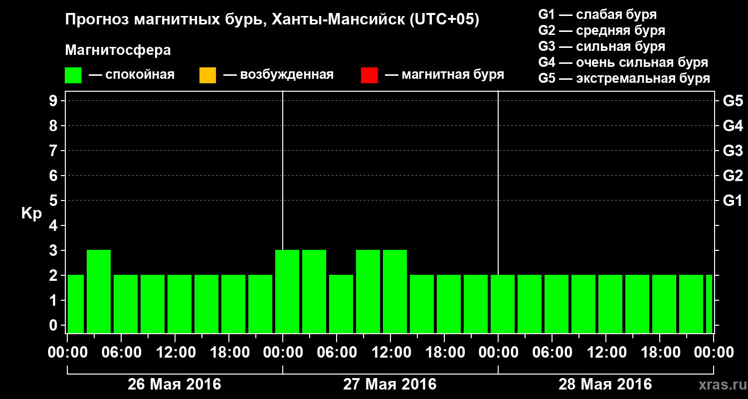 Прогноз магнитных бурь в Ханты-Мансийске — 26 мая 2016 года
