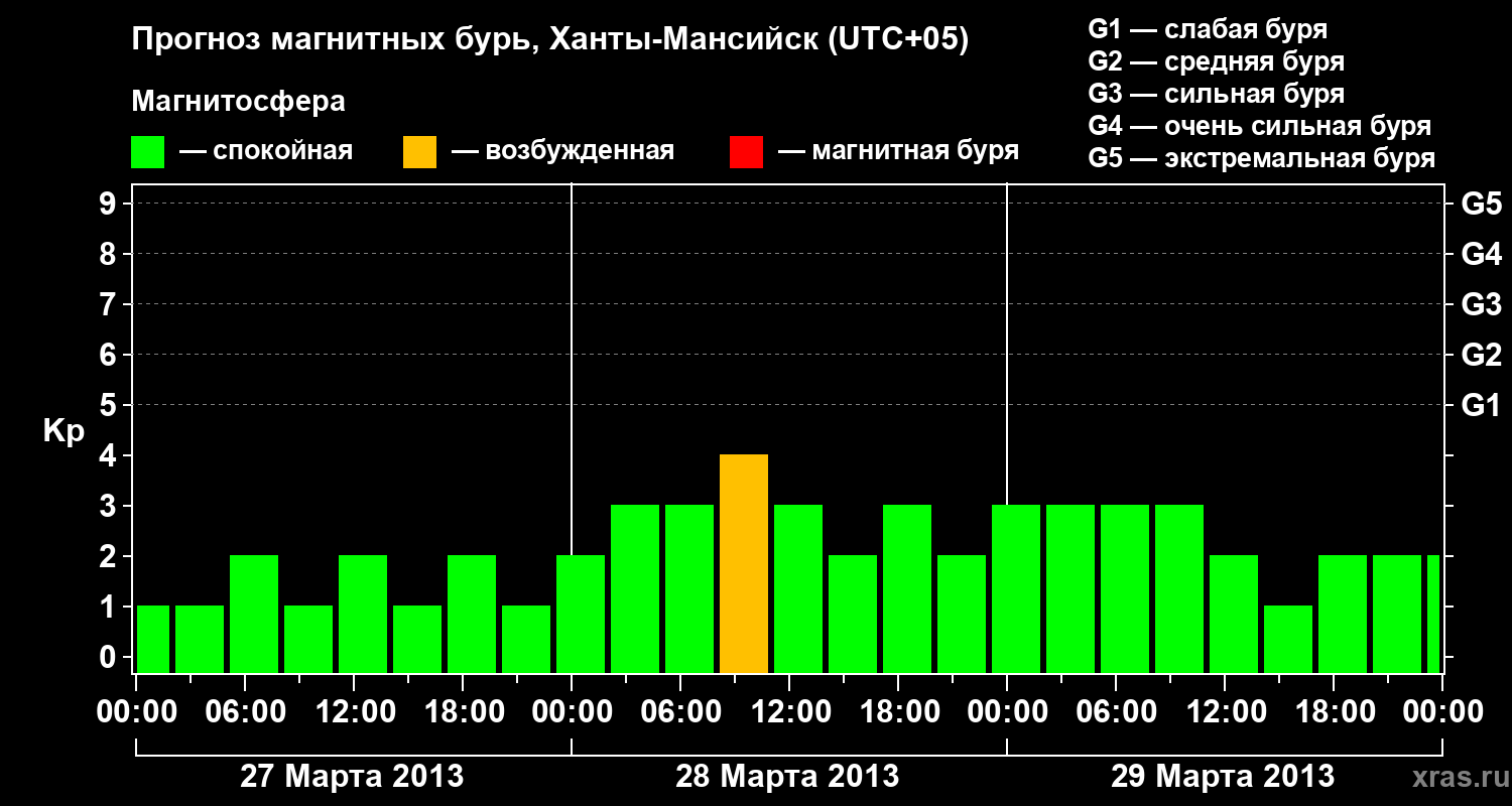 Прогноз магнитных бурь в Ханты-Мансийске — 27 марта 2013 года