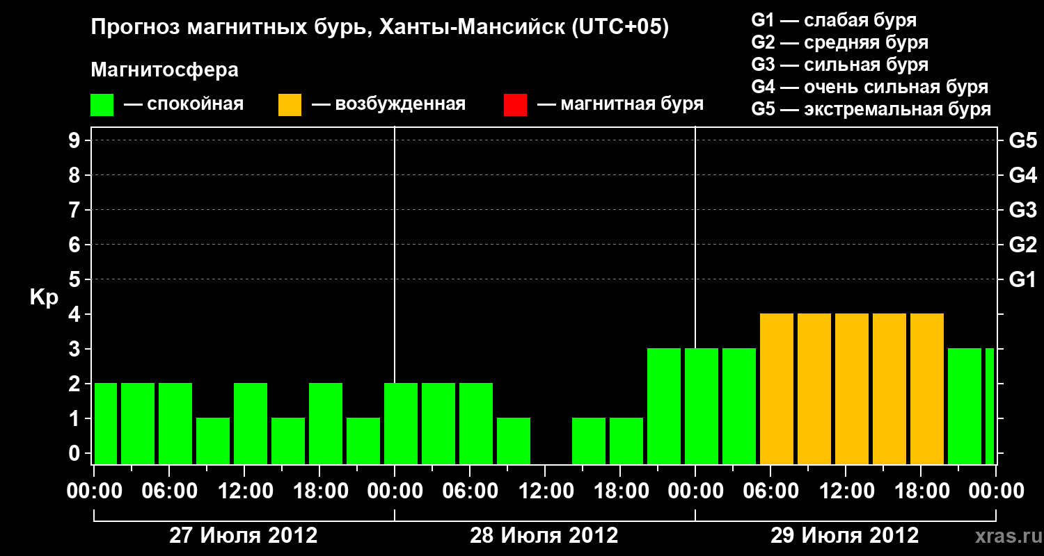 Прогноз магнитных бурь в Ханты-Мансийске — 27 июля 2012 года