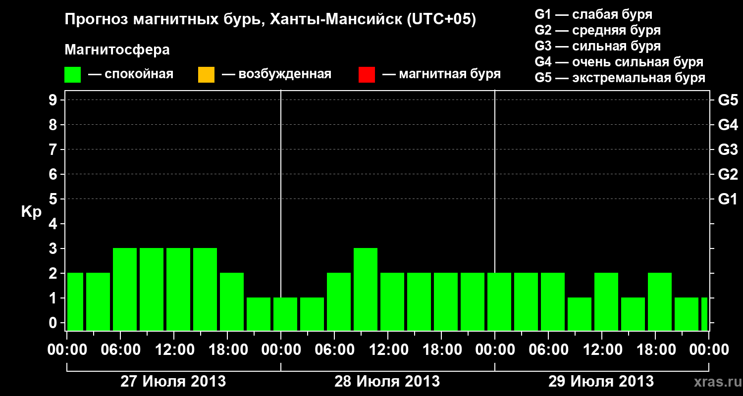 Прогноз магнитных бурь в Ханты-Мансийске — 27 июля 2013 года