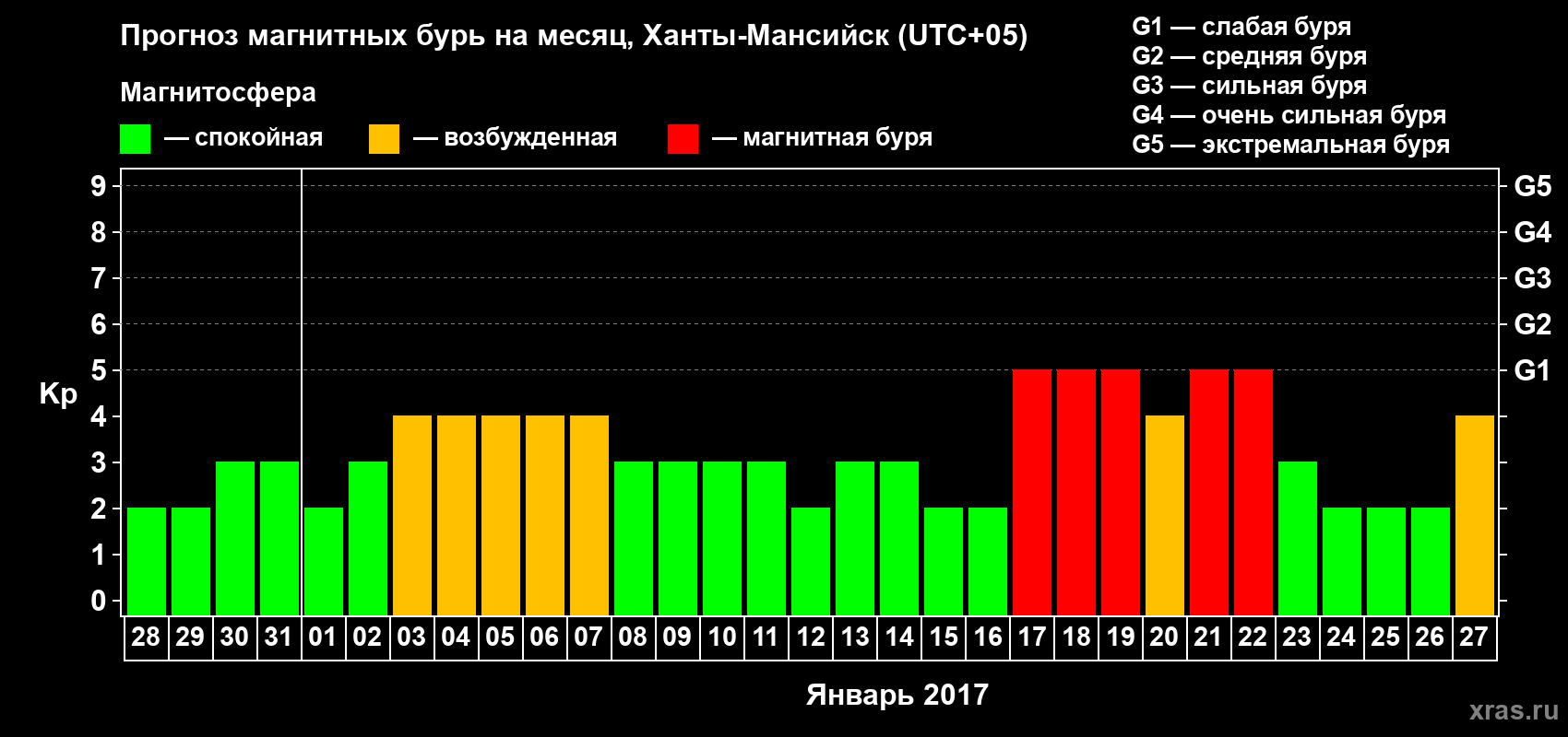 Прогноз магнитных бурь в Ханты-Мансийске — 28 декабря 2016 года
