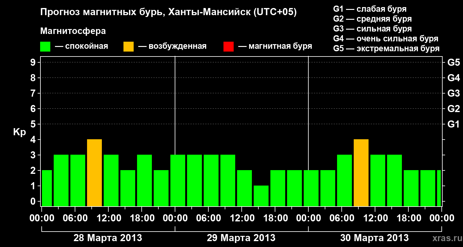 Прогноз магнитных бурь в Ханты-Мансийске — 28 марта 2013 года