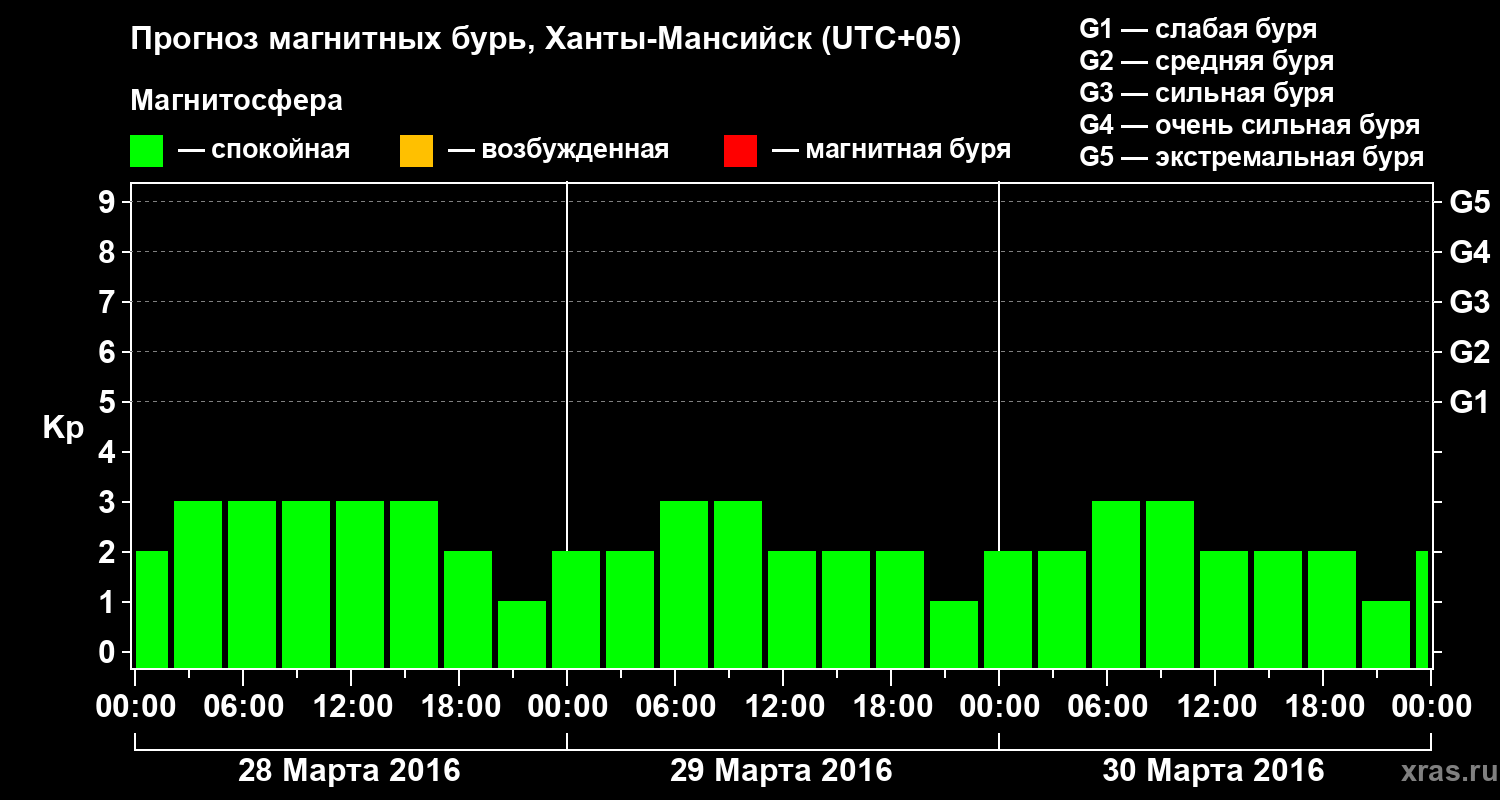 Прогноз магнитных бурь в Ханты-Мансийске — 28 марта 2016 года