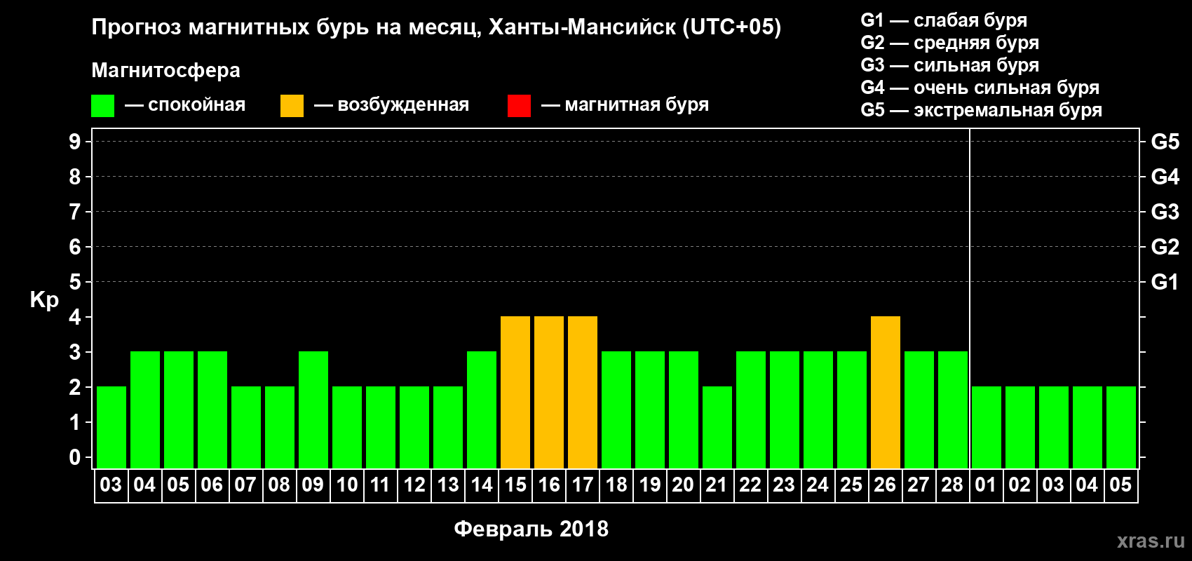 Прогноз магнитных бурь в Ханты-Мансийске на 3 февраля 2018 года