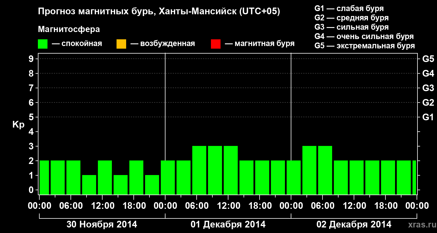 Прогноз магнитных бурь в Ханты-Мансийске — 30 ноября 2014 года