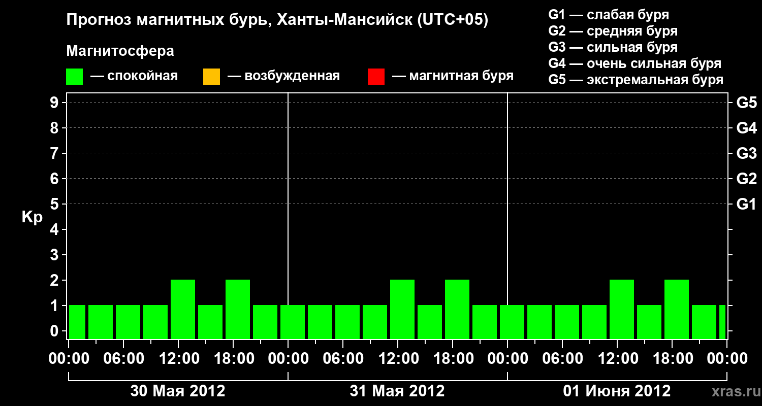 Прогноз магнитных бурь в Ханты-Мансийске — 30 мая 2012 года