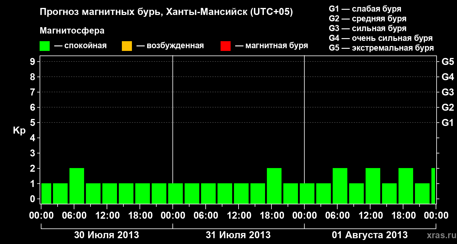 Прогноз магнитных бурь в Ханты-Мансийске — 30 июля 2013 года