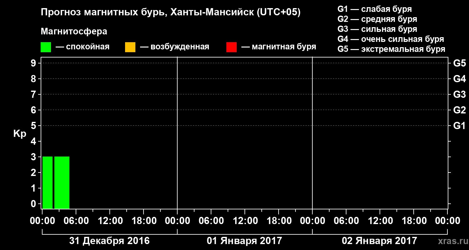 Прогноз магнитных бурь в Ханты-Мансийске — 31 декабря 2016 года
