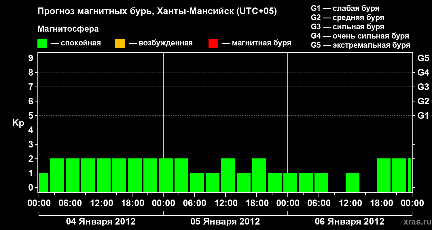 Прогноз магнитных бурь в Ханты-Мансийске — 4 января 2012 года