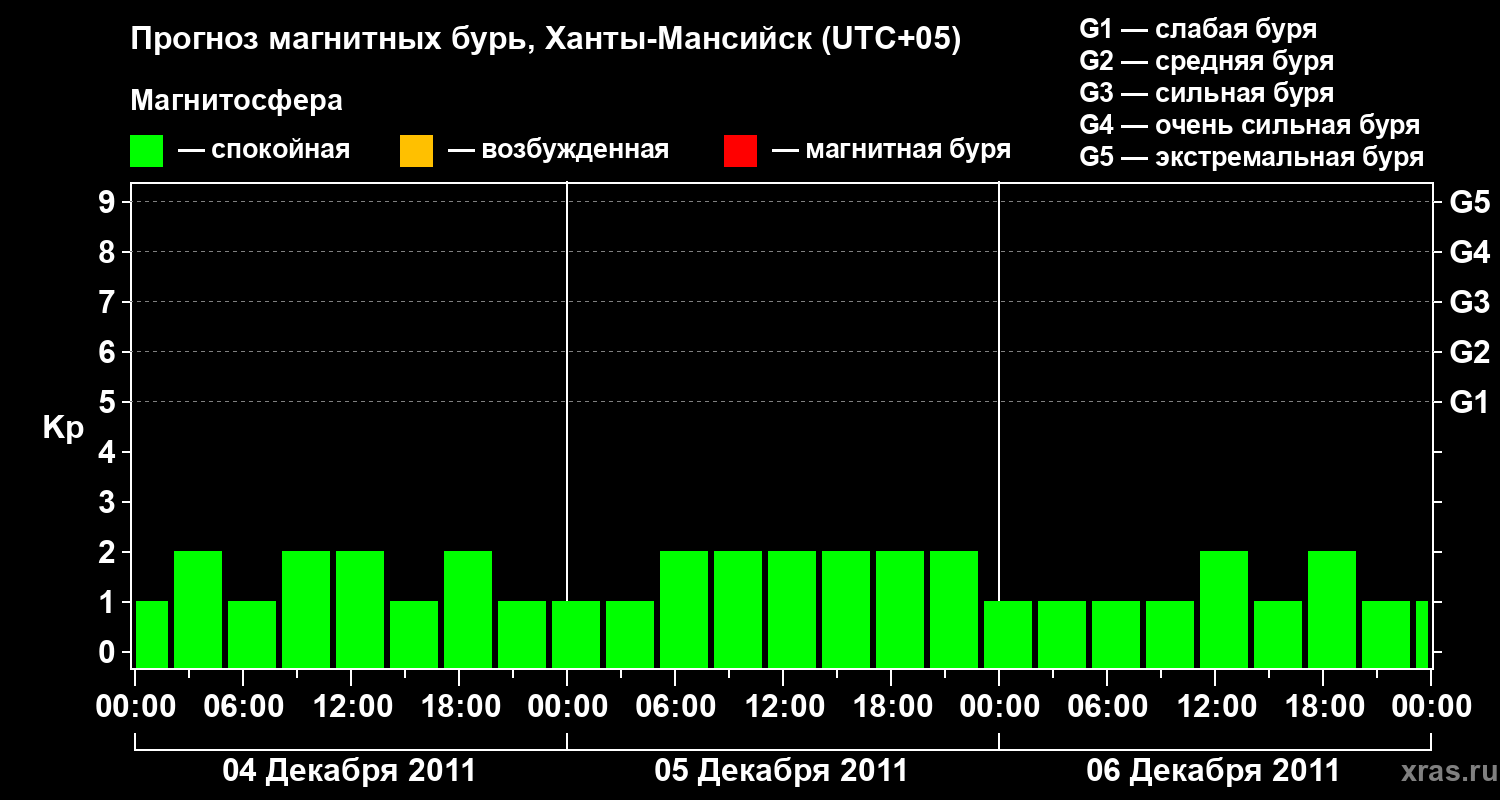 Прогноз магнитных бурь в Ханты-Мансийске — 4 декабря 2011 года