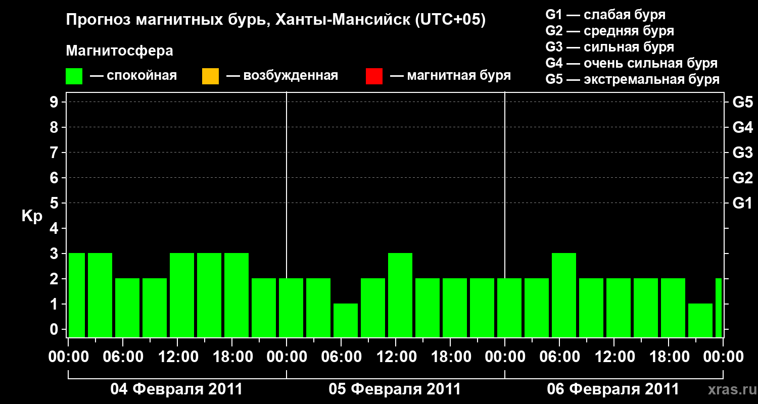 Прогноз магнитных бурь в Ханты-Мансийске на 4 февраля 2011 года