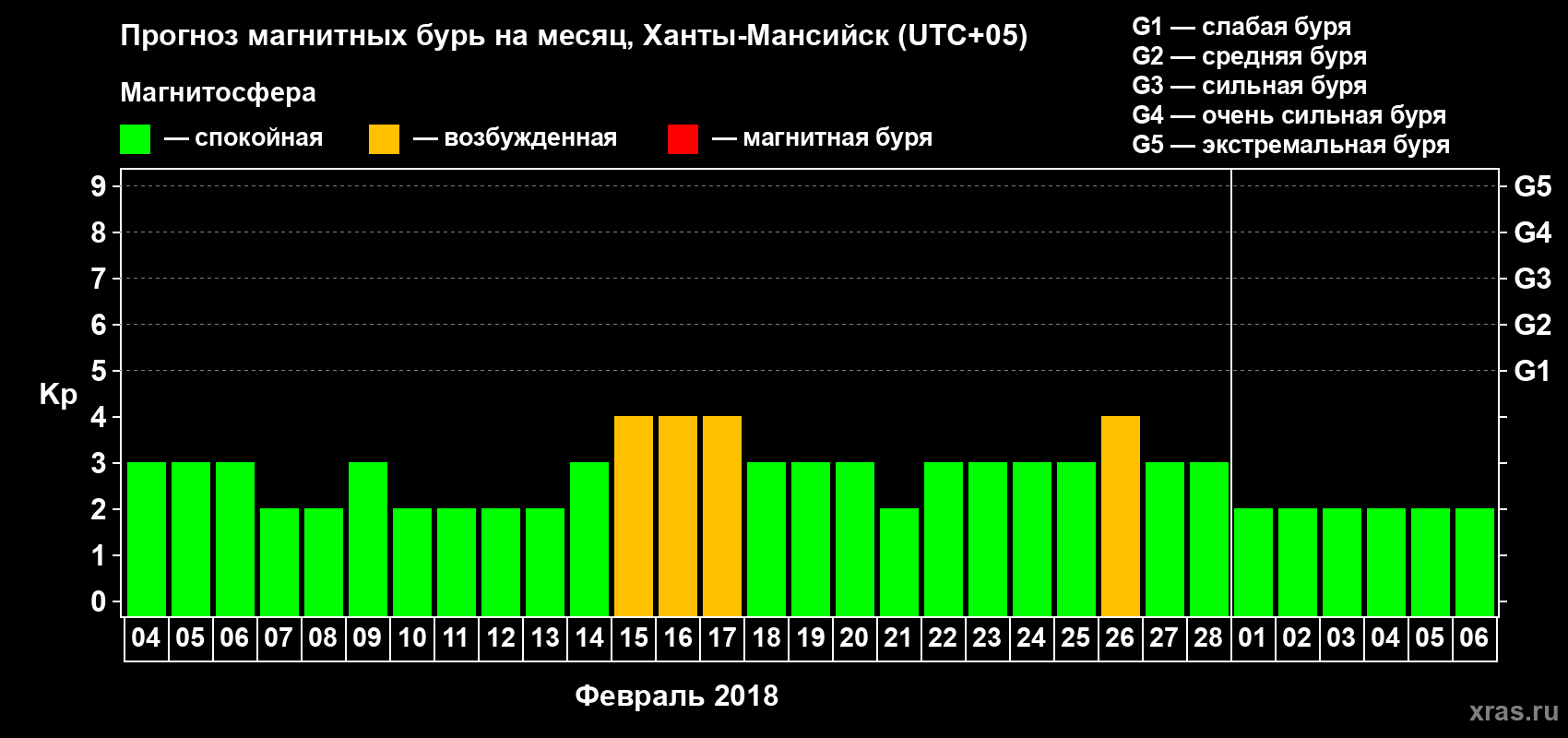 Прогноз магнитных бурь в Ханты-Мансийске на 4 февраля 2018 года