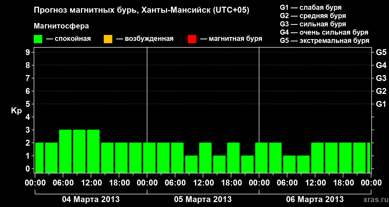 Прогноз магнитных бурь в Ханты-Мансийске — 4 марта 2013 года