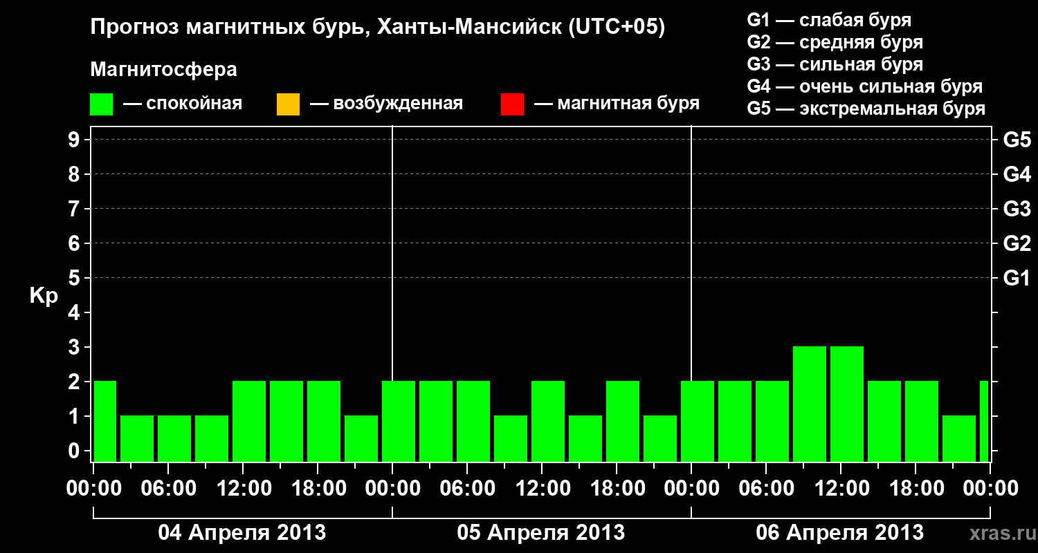 Прогноз магнитных бурь в Ханты-Мансийске — 4 апреля 2013 года