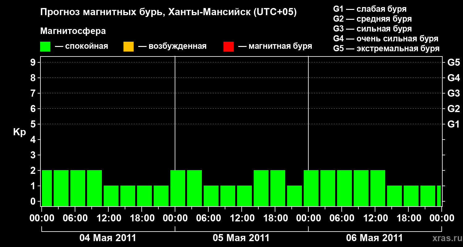 Прогноз магнитных бурь в Ханты-Мансийске — 4 мая 2011 года