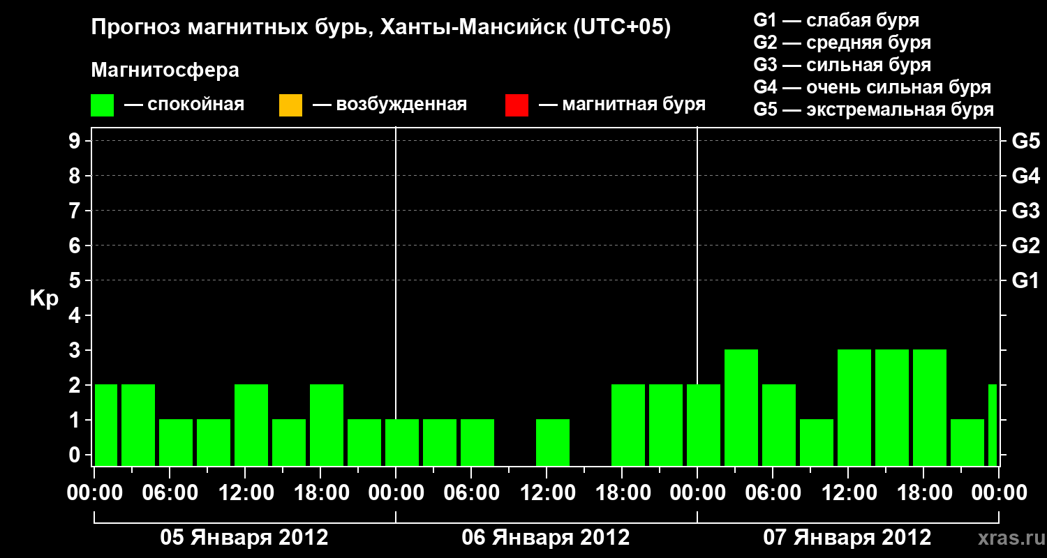 Прогноз магнитных бурь в Ханты-Мансийске на 5 января 2012 года