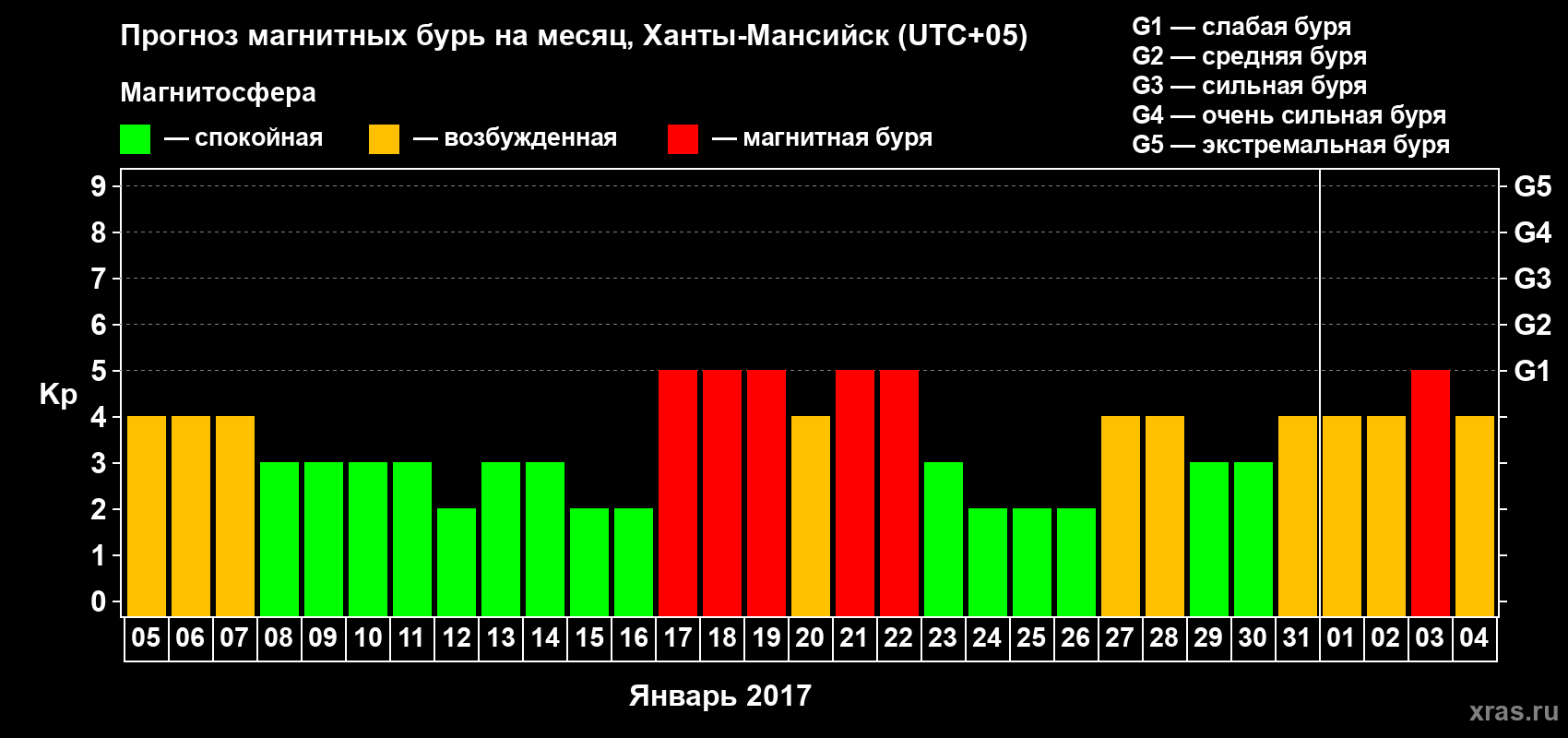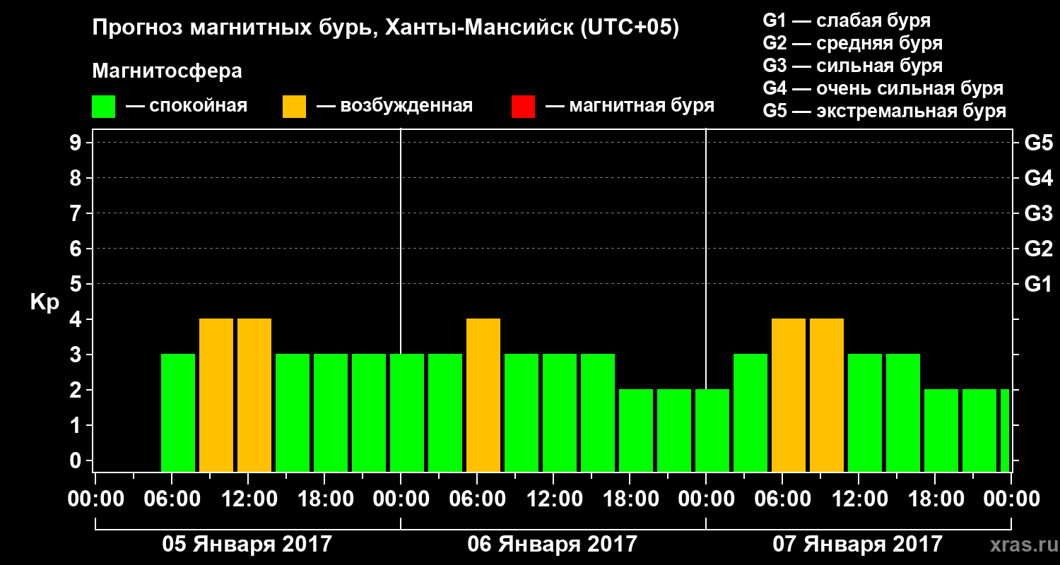 Прогноз магнитных бурь в Ханты-Мансийске на 5 января 2017 года