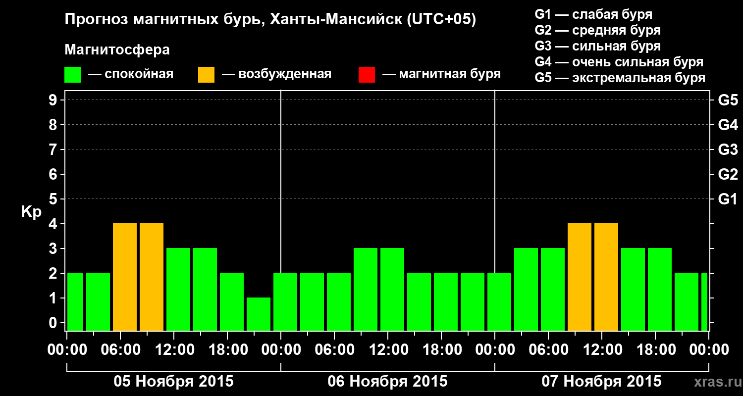 Прогноз магнитных бурь в Ханты-Мансийске на 5 ноября 2015 года