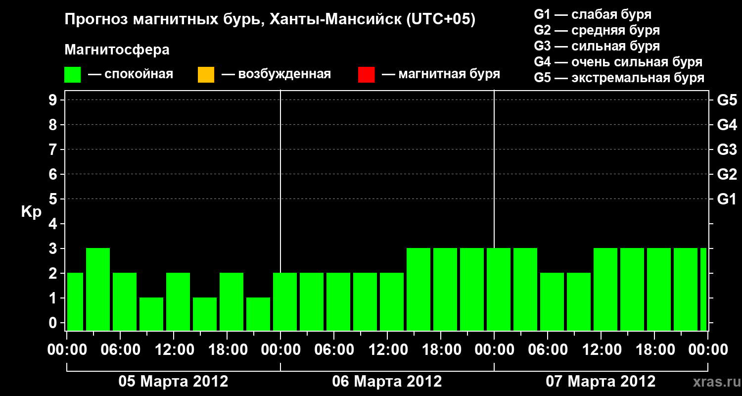 Прогноз магнитных бурь в Ханты-Мансийске на 5 марта 2012 года