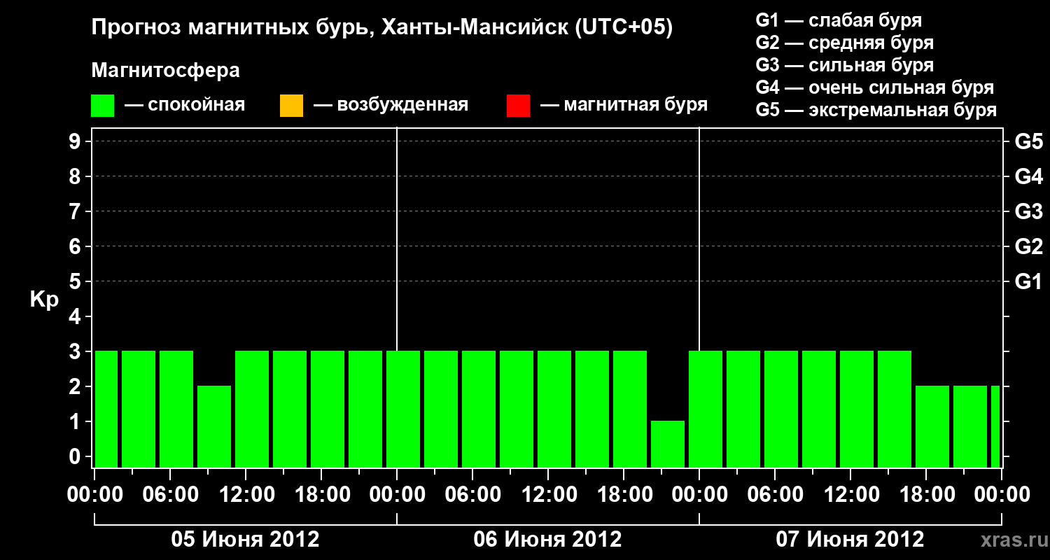 Прогноз магнитных бурь в Ханты-Мансийске на 5 июня 2012 года
