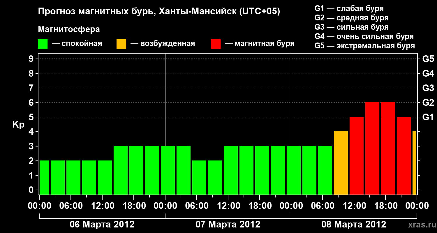 Прогноз магнитных бурь в Ханты-Мансийске — 6 марта 2012 года