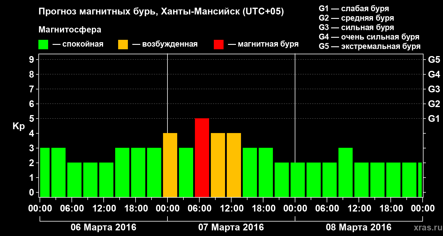 Прогноз магнитных бурь в Ханты-Мансийске — 6 марта 2016 года
