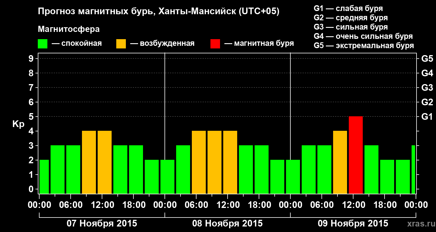 Прогноз магнитных бурь в Ханты-Мансийске — 7 ноября 2015 года