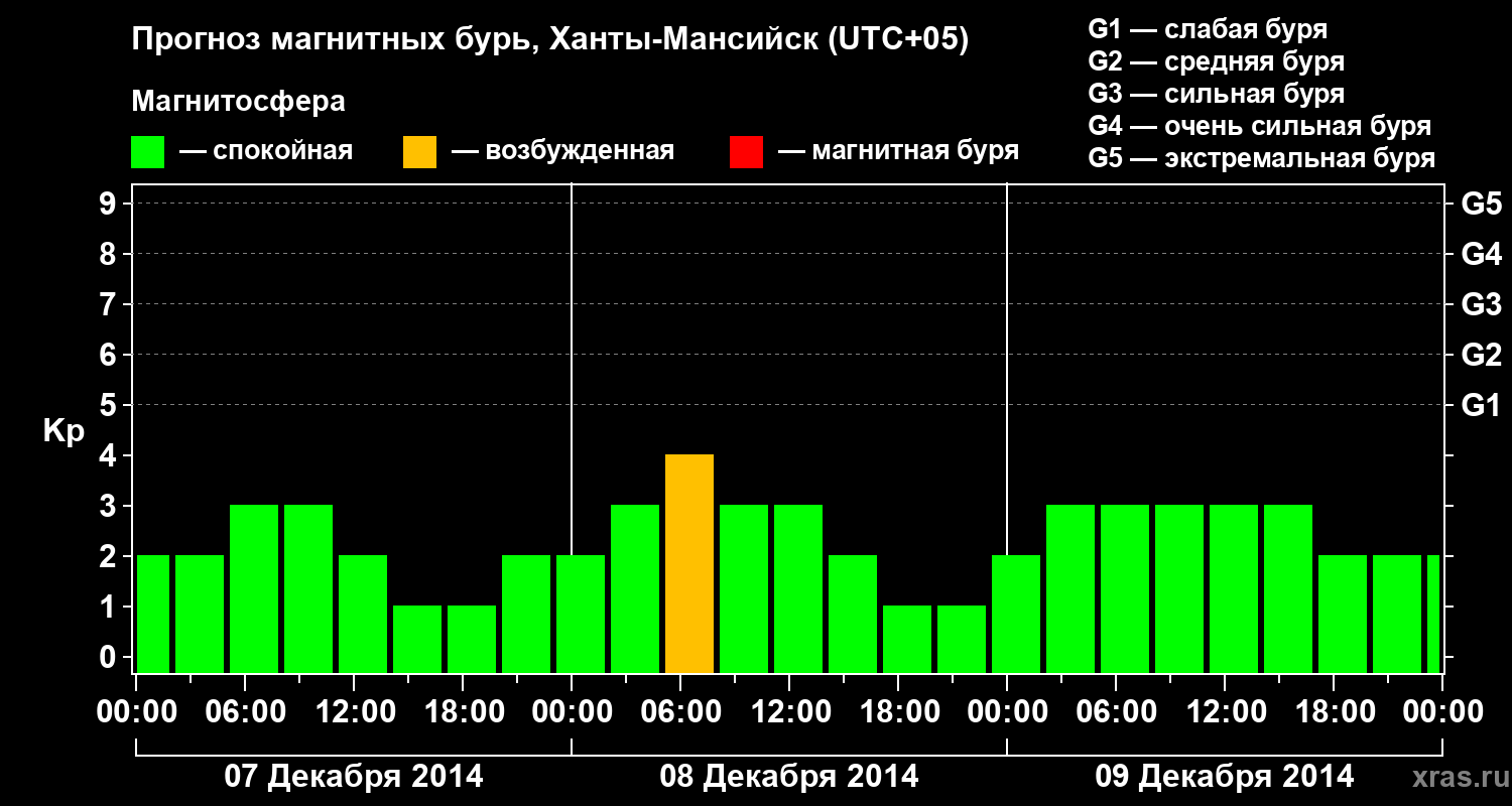 Прогноз магнитных бурь в Ханты-Мансийске — 7 декабря 2014 года