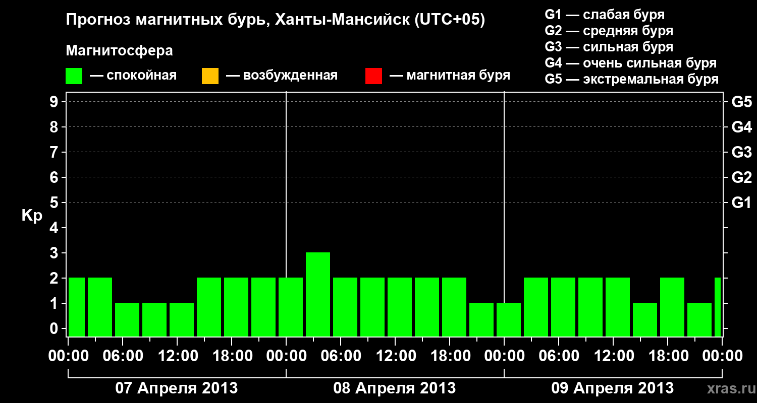 Прогноз магнитных бурь в Ханты-Мансийске — 7 апреля 2013 года