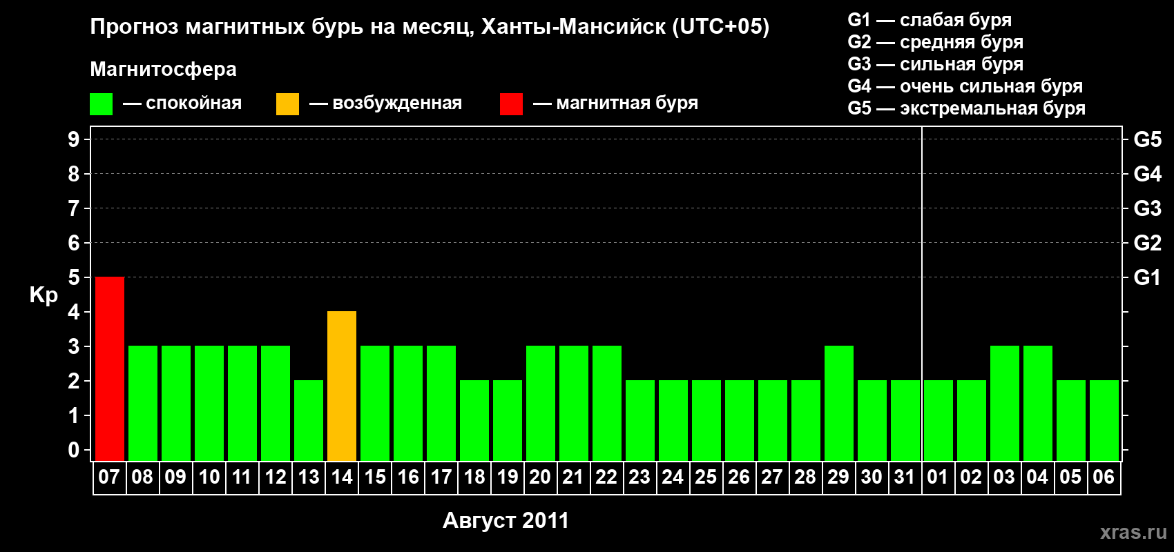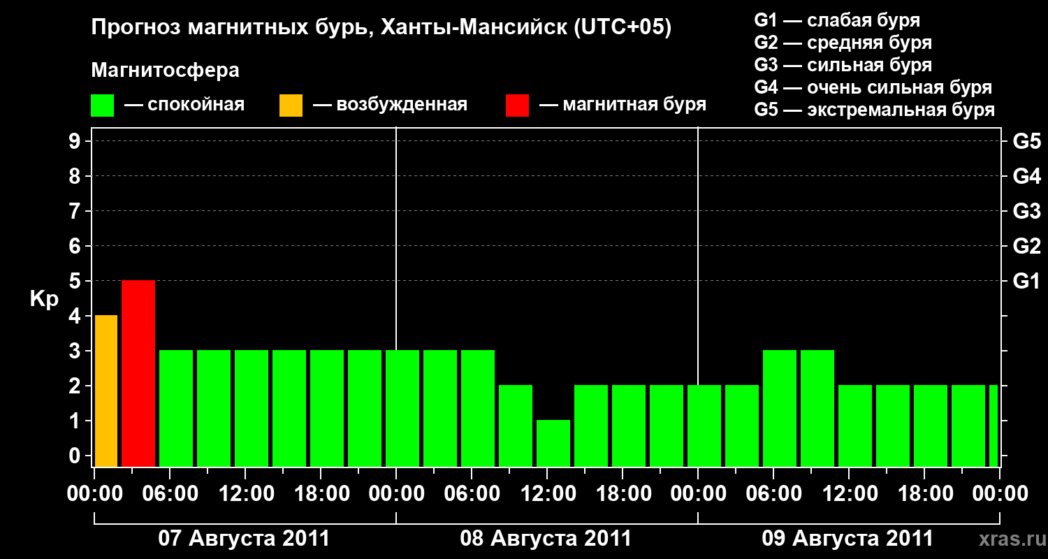 Прогноз магнитных бурь в Ханты-Мансийске на 7 августа 2011 года