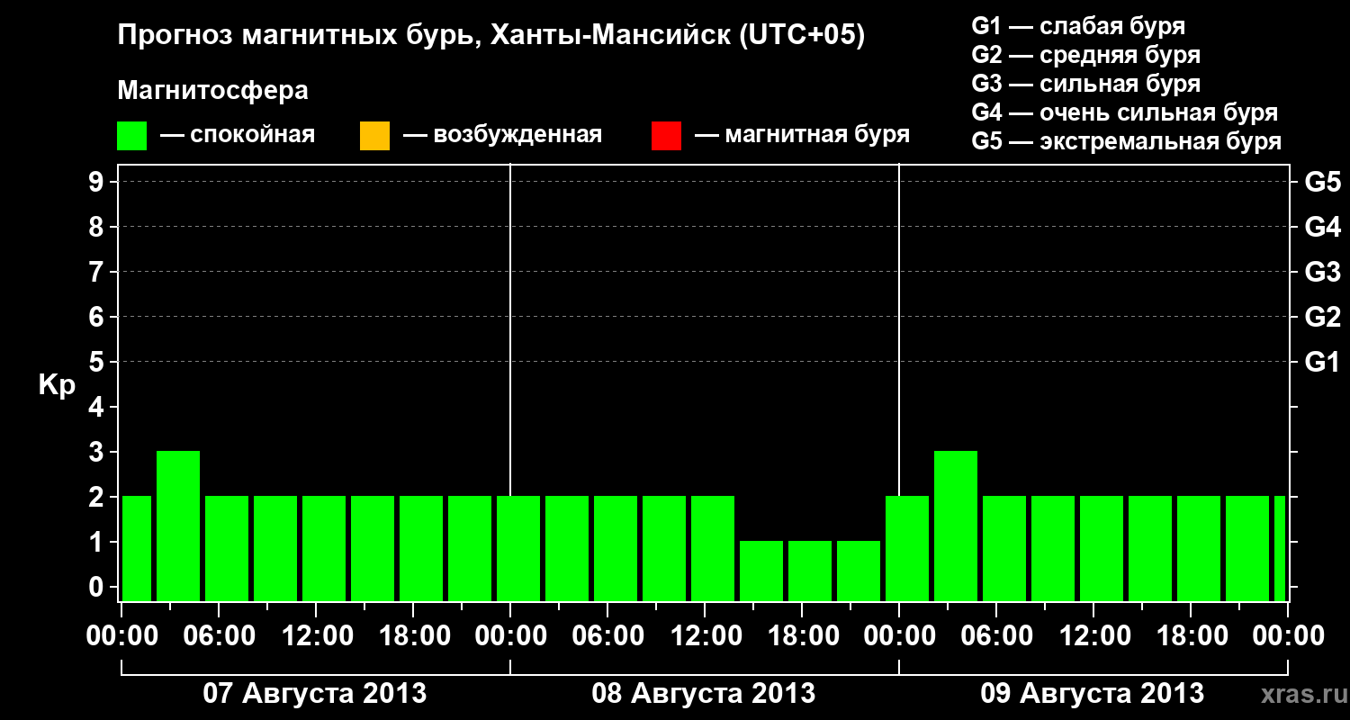Прогноз магнитных бурь в Ханты-Мансийске — 7 августа 2013 года