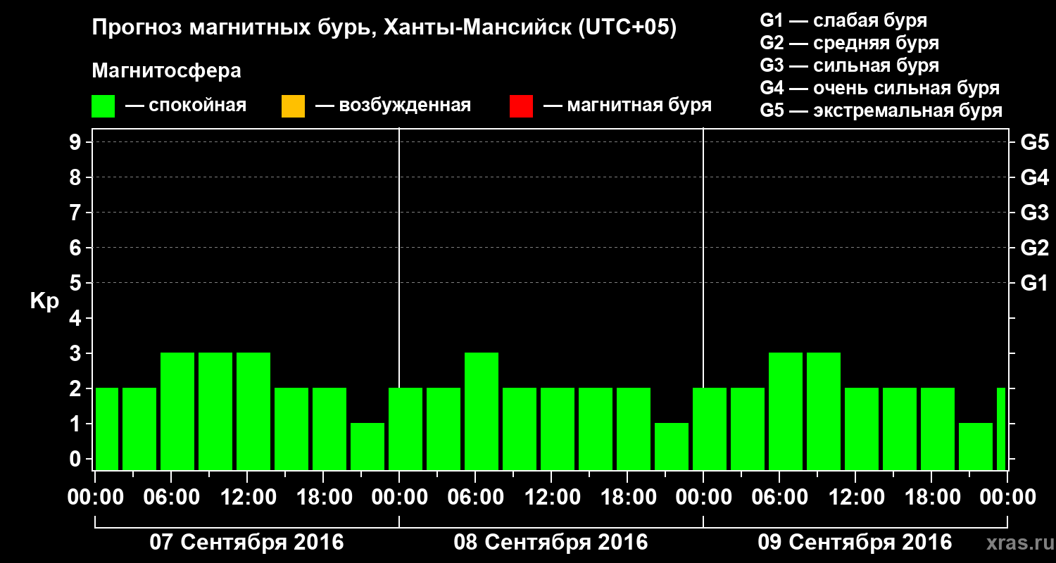 Прогноз магнитных бурь в Ханты-Мансийске — 7 сентября 2016 года