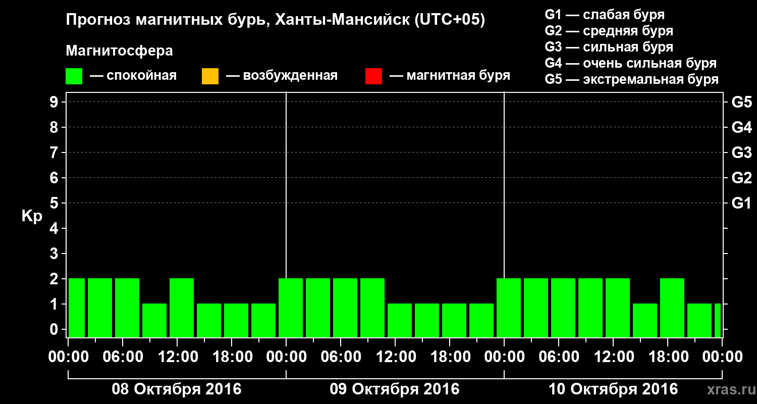 Прогноз магнитных бурь в Ханты-Мансийске — 8 октября 2016 года