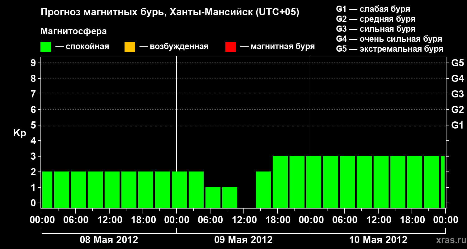 Прогноз магнитных бурь в Ханты-Мансийске — 8 мая 2012 года